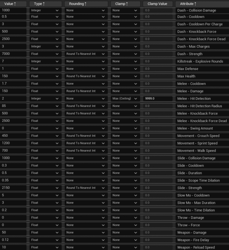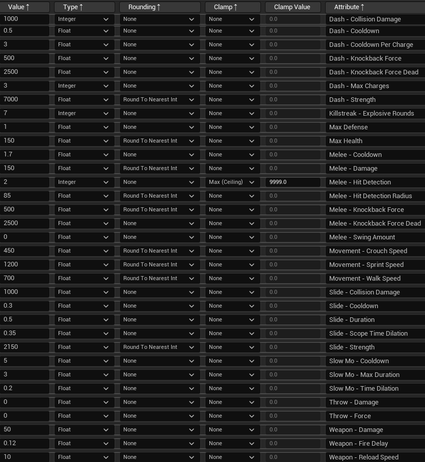 We put a lot of effort into adding an engaging progression system for player agency and replayability. Working with our systems designer and programmer, I designed and balanced stats, unlocks, and rarity tiers, and implemented them using a Curve Table built on gameplay structs (created by the programmer). Since we were three people involved in the system, I maintained documentation to keep iterations clear and transparent across design and programming. With the Data Asset system in place, I continuously tested values and refined the impact of each ability and stat.